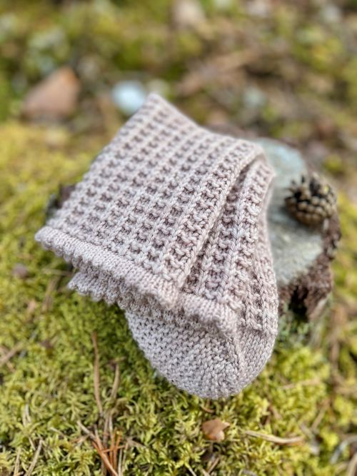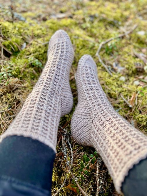 Näiden sukkien neulominen on kuin hidasta hengittämistä – meditatiivista ja rentouttavaa. Yksinkertainen vohvelikuosi muodostuu kuin itsestään kerros kerrokselta, tehden neulomisprosessista sujuvan ja nautinnollisen. Sukat neulotaan varresta varpaisiin aloittaen nirkkoreunuksella. Kantapää ja jalkapohja neulotaan ainaoikeinneuleella, mikä tekee sukista joustavat, mukavat ja monen kokoisiin jalkoihin istuvat.