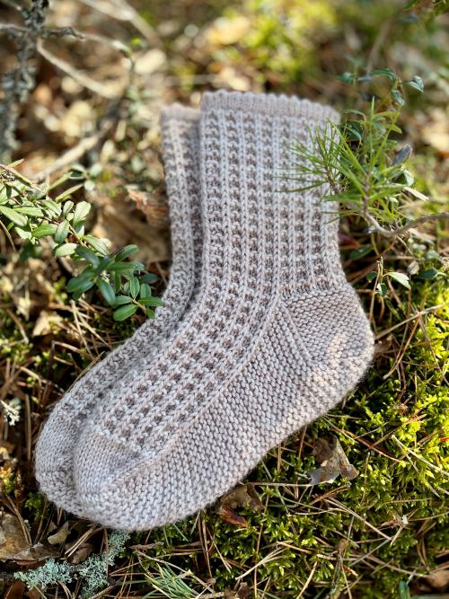 Lanka: Ruskanlehti Merino Sock DK (225 m/100 g) tai muu DK-vahvuinen sukkalanka.