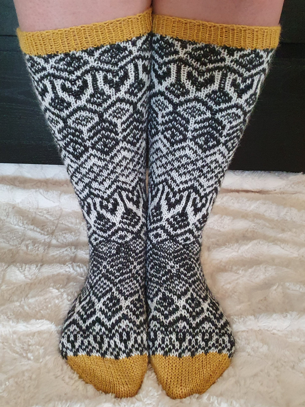 Wilhelminat-kirjoneulesukat, neuleohje (kuvat Johanna Lindholm)