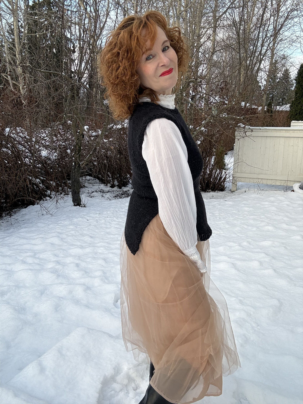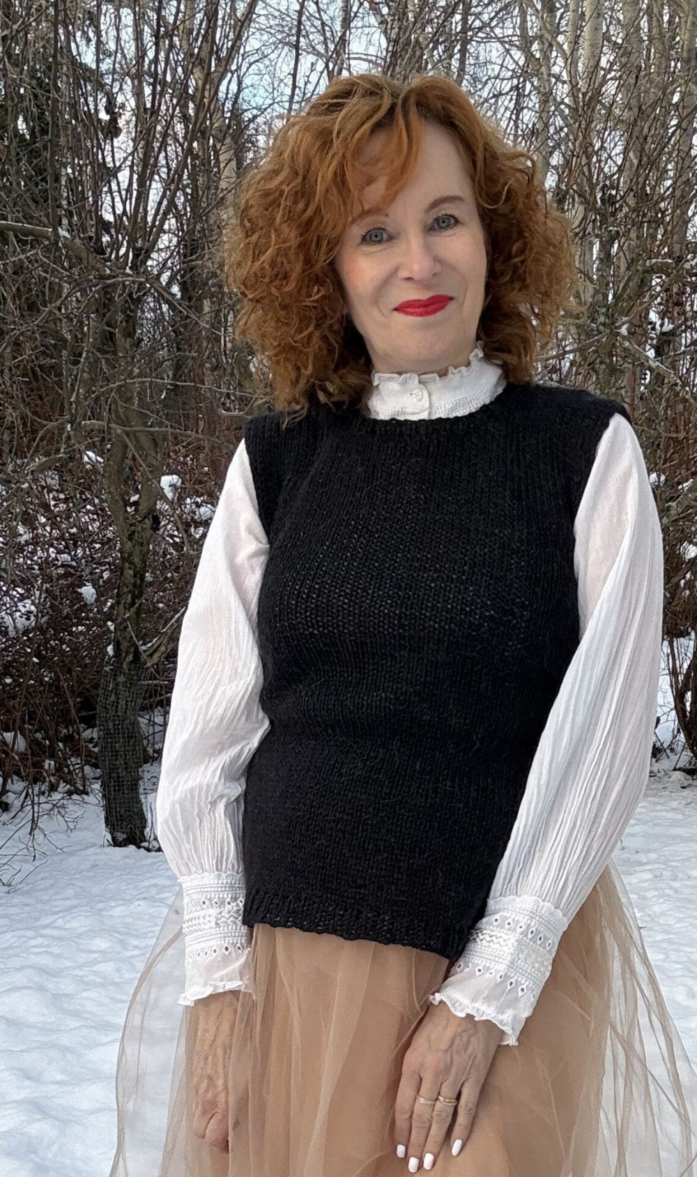 Yönmusta-neuleliivi, neuleohje (kuvat Minna Mäkinen)