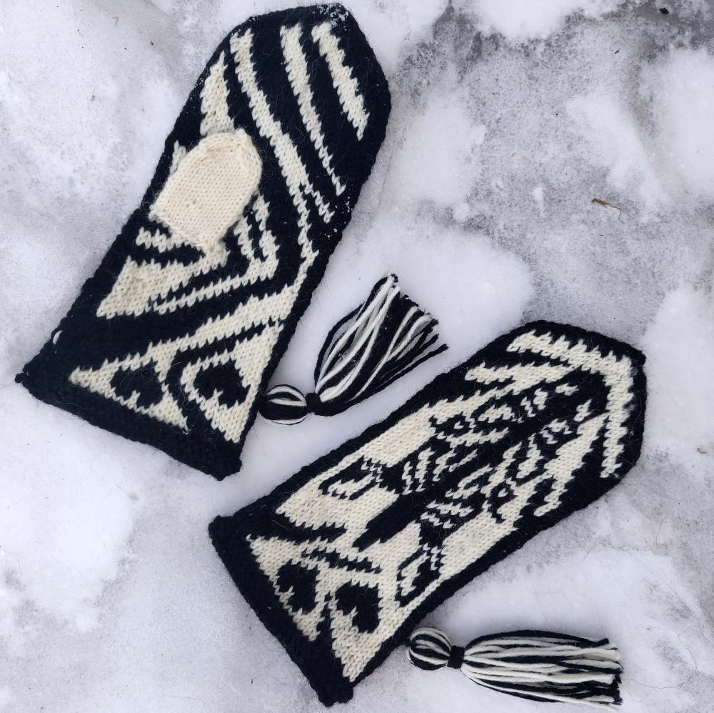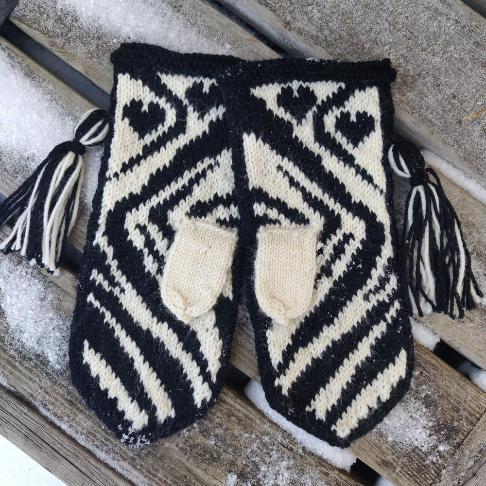 Zeebra-kirjoneulelapaset, neuleohje (kuva Katja Makkonen)