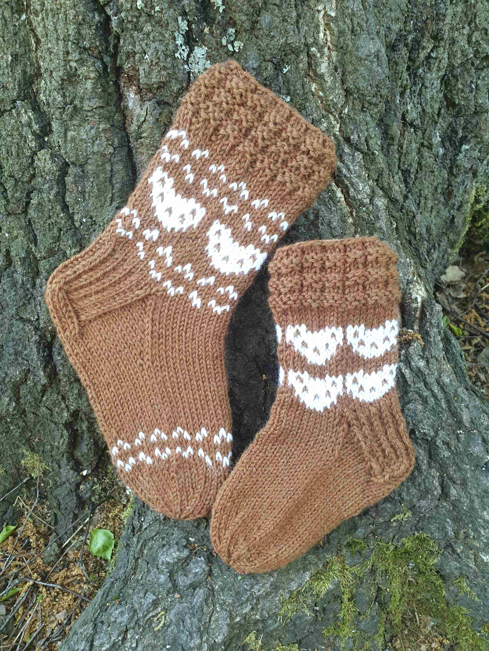 Nämä villasukat ovat hauskat villasukat lapselle, jossa kirjoneulekuvio muistuttaa koalaa. Koalat -villasukat neulotaan Novita 7 veljestä vahvuisesta langasta ja ohjeessa on kaksi kokoa: noin 22/23 ja noin 30/31. Lisäksi jalkaosaa voi neuloa helposti lapsen jalan koon mukaan. Ohjeessa on helpohkoa kirjoneuletta, mutta muutamia pidempiä lankajuoksuja on. Ohje sopii sekä aloittelijalle että kokeneelle neulojalle, mutta aloittelijan on hyvä kerrata lankadominanssi ja olla tarkkana langan juoksuissa.
